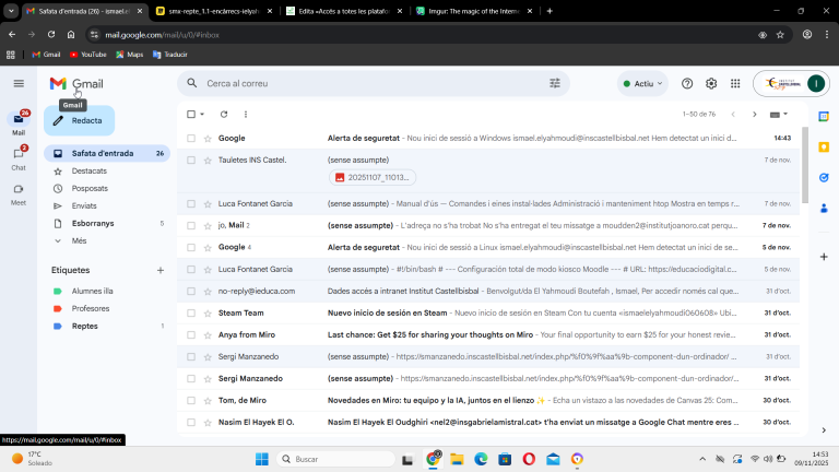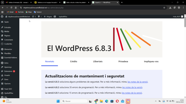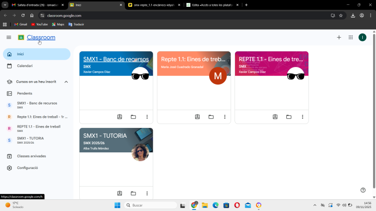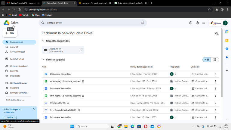 Accés a totes les plataformes web Tinc accés a les seguents pagines web que utilitzare durant el curs:Miro, WordPress, Gmail, Canva, Visual studio code i Python, Virtual Box, Vagrant, FileZilla, IsardVDI, Google Drive i Google Classroom. Torna a espai de treball en casa GMAIL DRIVE CLASSROOM MIRO VIRTUAL BOX CANVA WORDPRESS FILEZILLA