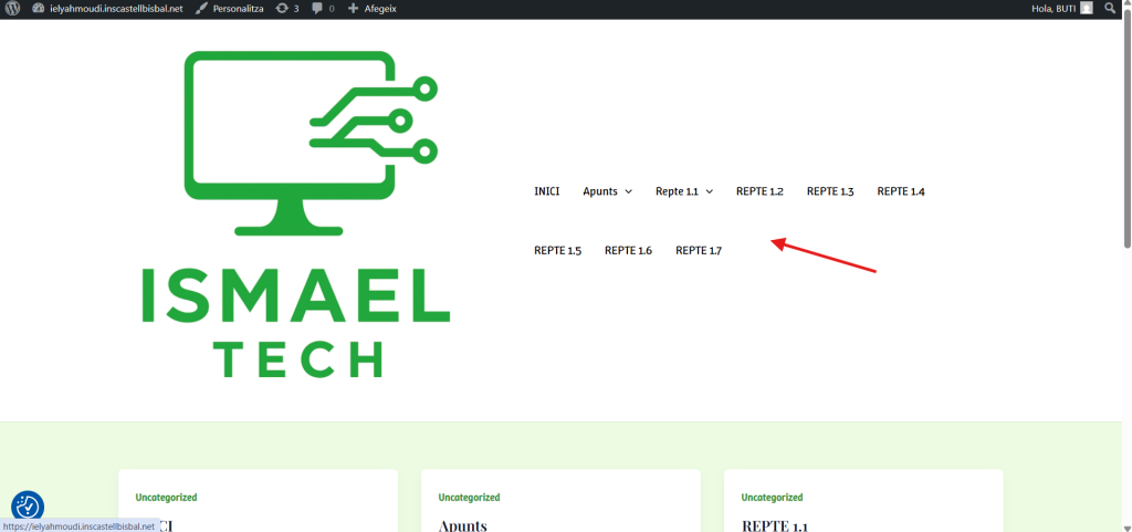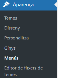 Creació d’un menú per les entrades He fet un menú per les entrades Per fer-ho anem al panel lateral d’administració i entrem a “aparença” una vegada dins ens anem a “menús”. I des de allà podem afegir i gestionar les nostres entrades. Torna a portafoli digital