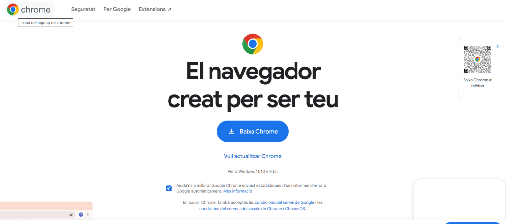 Anem a la pagina de Google Chrome i descarreguem.